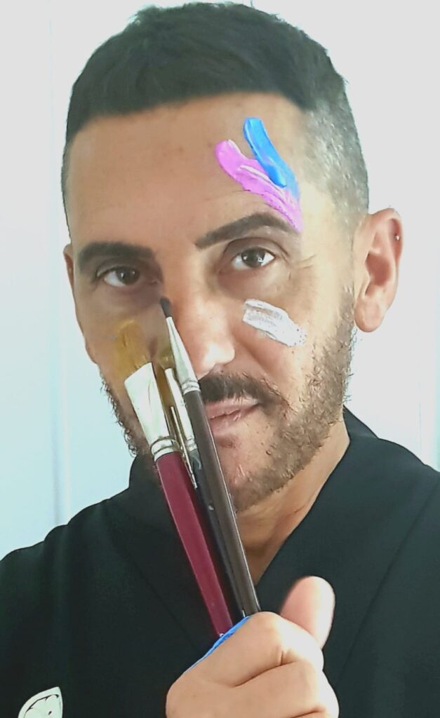 Desde niño, Juan ha estado rodeado de creatividad y decidió dedicarse a la pintura tras diplomarse en Magisterio y dirigir negocios de decoración.